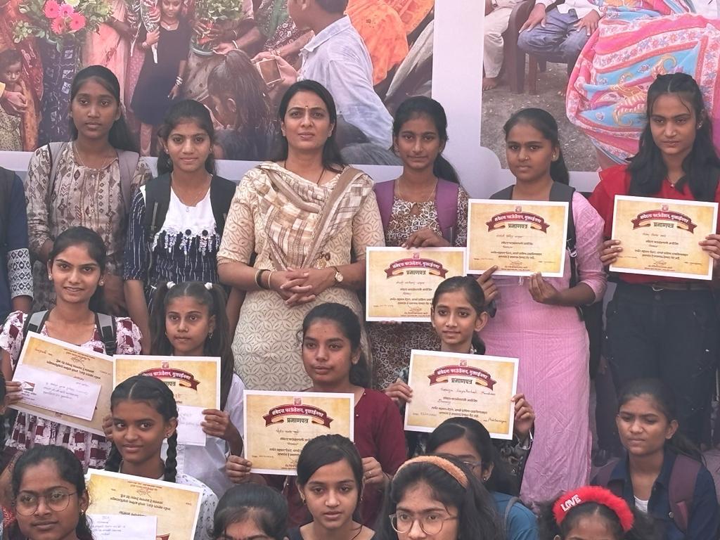 ॲड रोहिणी खडसे अध्यक्ष असलेल्या संवेदना फाउंडेशन मुक्ताईनगर तर्फे मुक्ताईनगर येथे नव दुर्गेची नऊ रूपे या विषयावर शालेय विद्यार्थ्यांसाठी चित्रकला स्पर्धेचे आयोजन करण्यात आले होते