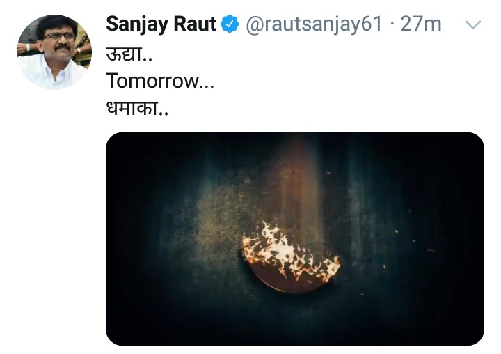 मुंबई : मुख्यमंत्री उद्धव ठाकरे यांची शिवसेनेचे खासदार आणि ‘सामना’चे कार्यकारी संपादक संजय राऊत यांनी घेलेल्या विशेष मुलाखतीचा ट्रेलर व्हिडीओ आज आपल्या ट्विट अकाउंट वरून शेअर करत उद्या धमाका… असं म्हटलं आहे.