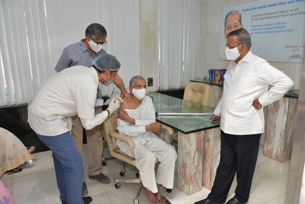 जळगाव, दि.5 (प्रतिनिधी) – महाराष्ट्रासह देशभरात कोव्हिडं सशुल्क लसीकरणाचा दुसरा टप्पा १ मार्चपासून सुरू झाला आहे. यात शासनाने शहरात लसीकरणासाठी विविध सेंटर जाहीर केले आहे यात जळगाव येथील कांताई नेत्रालय यांनाही अधिकृत कोरोना व्हॅक्सीनेशन सेंटर चा दर्जा दिला असून आजपासून या केंद्रात लसीकरणाची सुरुवात करण्यात आली , आज पहिल्याच दिवशी लसीकरणास उत्तम प्रतिसाद मिळाला, लसीकरण केंद्राचे औपचारिक उद्घाटन सेवादास दलीचंद जैन व जैन इरिगेशन चे अध्यक्ष अशोक जैन यांनी लस घेऊन केले , हे सेंटर सुरू झाल्याच्या पहिल्याच दिवशी अनेक नागरिकांनी लस टोचुन घेतली आहे.