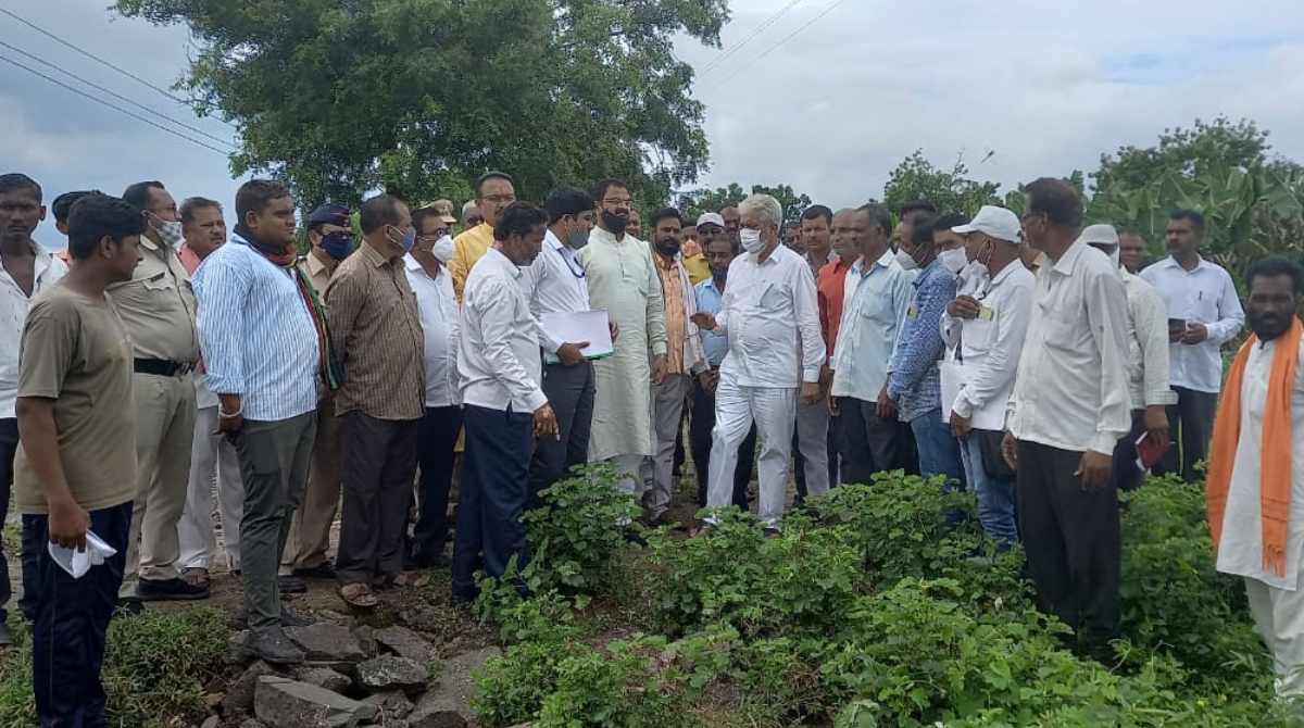 मंत्री श्री. भुसे यांनी आज जामनेर तालुक्यातील ओझर, हिंगणे व सामरोद शिवारातील पिकांच्या नुकसानीची पाहणी केल्यानंतर शेतक-र्यांशी संवाद साधला.