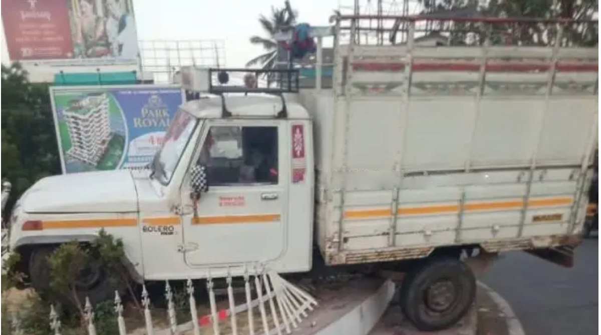 शहरातील आकाशवाणी चौकात सर्कल तयार करण्यात आले आहे. मंगळवारी पहाटेच्या सुमारास एक मालवाहू वाहन त्या सर्कलवर चढले. अपघातात सुदैवाने कोणतीही जीवितहानी झाली नसली तरी वाहनाचे नुकसान झाले आहे. सकाळी क्रेनच्या साहाय्याने वाहन रस्त्याच्या बाजूला करण्यात आले.