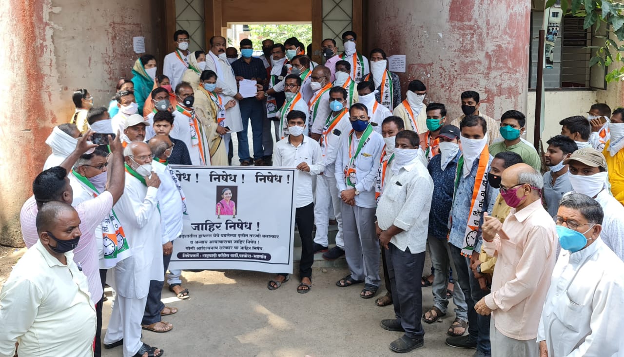 पाचोरा, (प्रतिनिधी) -हाथरस येथील बलात्कार घटनेच्या निषेधार्थ पाचोरा राष्ट्रवादी काँग्रेसने आज मोर्चा काढत निषेध नोंदवला. पाचोरा तहसीलदार कैलास चावडे यांना निवेदन देताना निवेदन देताना माजी आमदार भाऊसो दिलीप वाघ,सोबत तालुकाध्यक्ष विजय पाटील, शहराध्यक्ष सतीश चौधरी, नगरसेवक विकास पाटील, बशीर बागवान, रसूल चाचा, वासुदेव महाजन, अशोक मोरे, भूषण वाघ, नाना देवरे, सुभाष पाटील, डॉक्टर पी एन पाटील, जगदीश बापू सोनार अजहर खान सिताराम पाटील सर रणजीत पाटील सर, अविनाश सुतार, सौ सुचेता वाघ, सरला पाटील, नीलिमा पाटील, सौ सुनीता मांडोळे, जयश्री मिस्तरी, अजय अहिरे, बारकू पाटील, धर्मां पाटील, प्रकाश पाटील , ज्योतिष परदेशी, संतोष परदेशी, रज्जाक शेख, विलास सोनवणे, अभिजित पवार, सागर अहिरे, पंकज गढरी, चंद्रकांत पवार, गिरीश पाटील, संतोष परदेशी, ईश्वर परदेशी, भगवान परदेशी, संजय पाटील, प्रेम राज पाटील, शालीग्राम पाटील, एकनाथ पाटील, संजय करंदे, जनार्दन पाटील, नितीन पवार, बाबाजी पाटील, नाना पाटील, पुरुषोत्तम पाटील, रशीद मणियार, विनोद पाटील, सुनील पाटील, विक्रांत पाटील, सागर भोसले, किशोर पडवळ, बजरंग पाटील, किशोर पाटील, गोकुळ पाटील सर, निलेश पाटील, गौरव पाटील, चेतन पाटील, करण सूर्यवंशी, सुनील पाटील, अरुण पाटील, भगवान मिस्त्री, रोहित येवले, महेश माळी, सागर महाजन, गौरव , सागर भोसले, कमलेश अहिराव, विनोद पाटील, रशीद शेख, विनोद सुभाष पाटील, विक्रांत पाटील चेतन पाटील उमेश पाटील, लखन वाघ वाजिद बागवान, महाराज, कमलेश नोथवाणी आदी सर्व सेलचे पदाधिकारी व कार्यकर्ते उपस्थित होते.