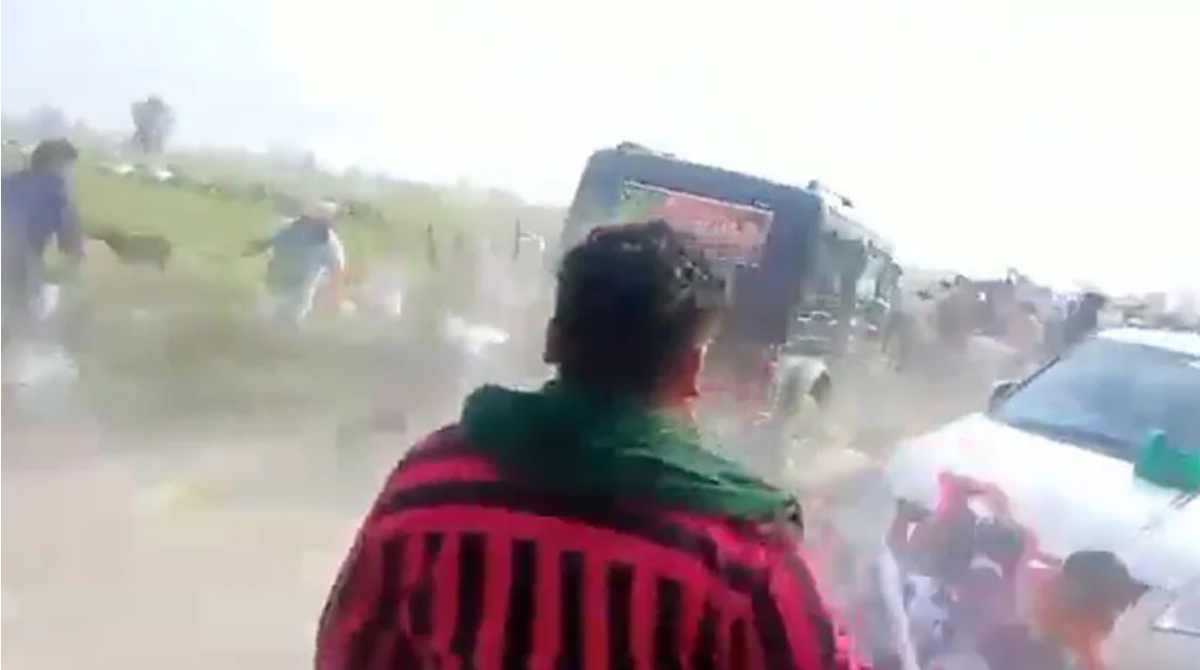 लखीमपूर खेरीच्या या 45 सेकंदाच्या व्हिडिओमध्ये असे दिसून येते की शेतकरी काळे झेंडे घेऊन रस्त्यावर पुढे जात आहेत आणि त्याच वेळी थार कार निघून जाते, त्यांना खूप वेगाने तुडवत आहे. हल्लेखोर वाहनाबरोबरच ताफ्यातील आणखी दोन वाहने वेगाने निघतात.