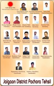 तालुकाध्यक्ष: पंकज गढरी, महासचिव: गौरव पाटील, उपाध्यक्ष: आकाश चित्ते, कोषाध्यक्ष: रामा जठार सचिव: