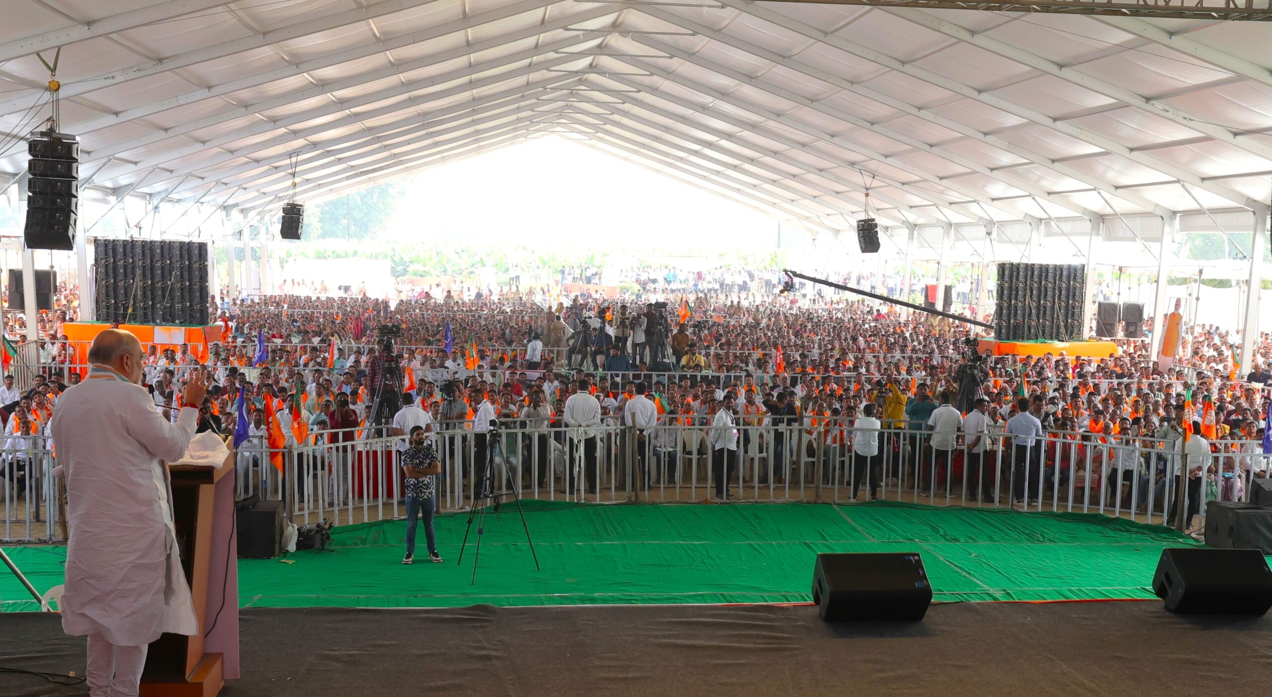 महायुतीचे रावेर मतदार सघाचे उमेदवार अमोल जावळे,भुसावळचे उमेदवार संजय सावकारे,चोपड्याचे उमेदवार चंद्रकांत सोनवणे,मुक्ताईनगरचे उमेदवार चंद्रकांत पाटील यांच्या प्रचारासाठी आयोजित केलेल्या सभेत शहा बोलत होते. तत्पूर्वी सभेला केंद्रीय क्रीडा युवा कल्याण मंत्री रक्षा खडसे ग्रामविकास मंत्री गिरीश महाजन,उमेदवार अमोल जावळे, संजय सावकारे,डॉ.कुंदन फेगडे आदींनी संबोधित केले. अमित शहा यांनी व्यासपीठावर येताच छत्रपती शिवाजी महाराज यांच्या पुतळ्याला पुष्पाहार अर्पण करून अभिवादन केले आणि थेट भाषणाला सुरुवात केली.