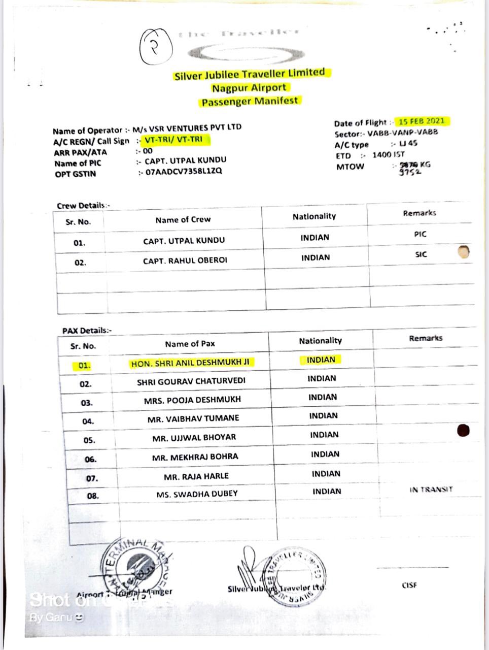 यानंतर खुद्द गृहमंत्री अनिल देशमुख यांनी दवाखान्यातून डिस्चार्ज घेतल्यानंतर दवाखान्याच्या गेट काही पत्रकार मंडळी उपस्थित होते त्यामुळे मि तिथेच पत्रकार परिषद घेतली असल्याचा खुलासा काल केला होता. आता भाजपनं पुन्हा गृहमंत्री अनिल देशमुख यांचा त्या दिवसाचा विमान प्रवासाचे कागदपत्र ट्विट करुन खळबळ उडवली आहे.