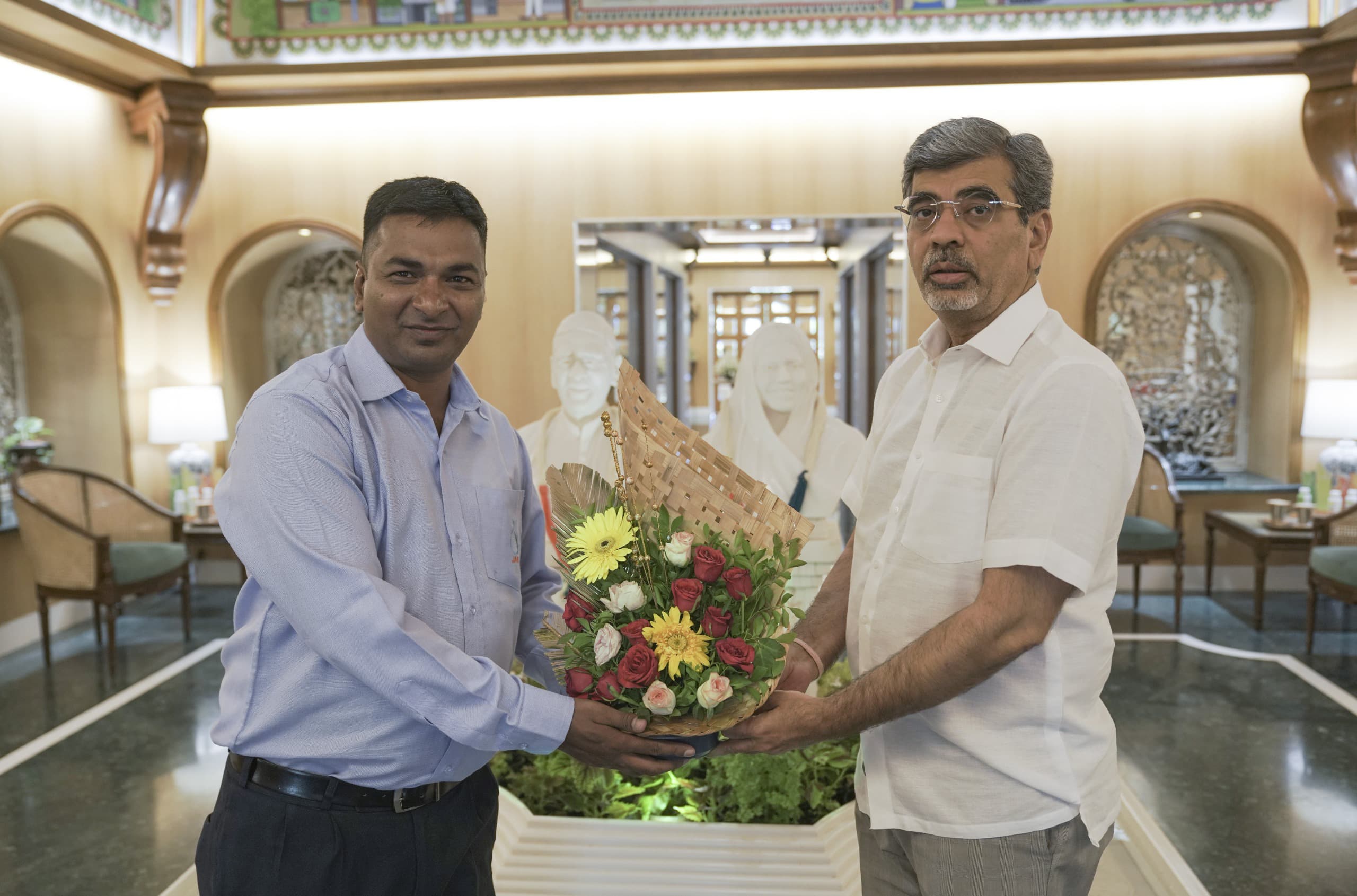 संपूर्ण भारतातून जागतिक बुद्धिबळ ऑलिम्पियाड स्पर्धेमध्ये पंच म्हणून निवड झालेल्या प्रविण ठाकरे यांना शुभेच्छा देताना जैन इरिगेशनचे सहव्यवस्थापकीय संचालक अतुल जैन