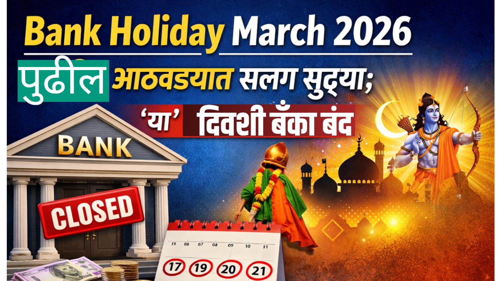 भारतातील विविध राज्यांमध्ये सण आणि प्रादेशिक उत्सवांमुळे बँकांना सुट्टी असते. मार्च २०२६ मध्ये १७ मार्च, १९ मार्च, २० मार्च आणि २१ मार्च या दिवशी काही राज्यांमध्ये बँका बंद राहणार असल्याची माहिती समोर आली आहे.या सुट्ट्यांमध्ये धार्मिक सण, प्रादेशिक नववर्ष सण आणि विकेंडचा समावेश असल्यामुळे अनेक ठिकाणी बँकांचे कामकाज ठप्प राहणार आहे.