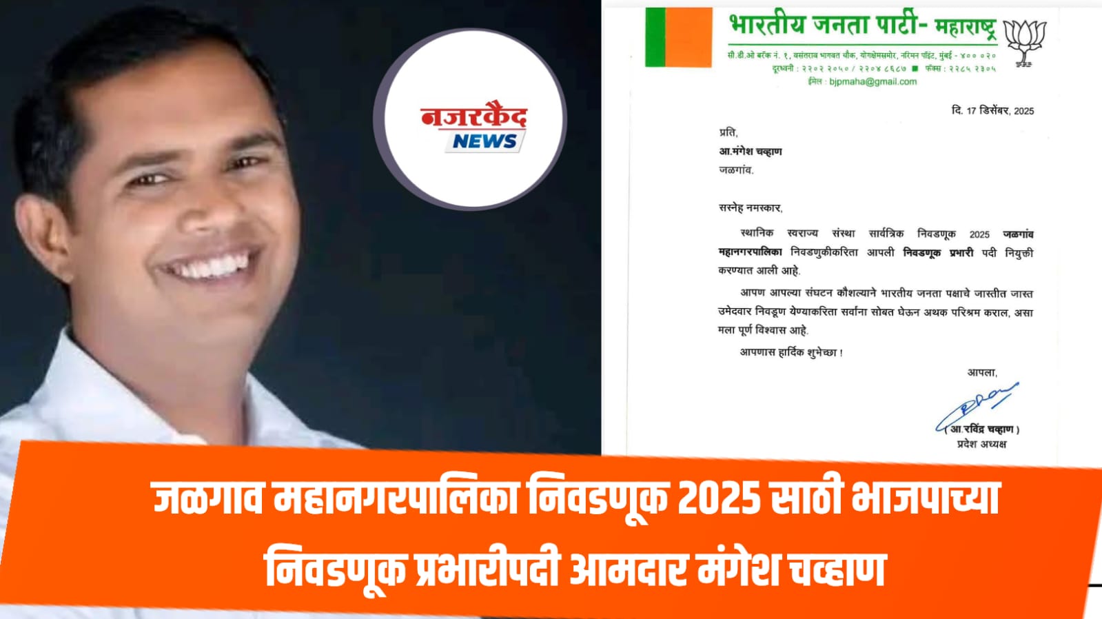 जळगाव | प्रतिनिधी जळगाव महानगरपालिका निवडणूक २०२५ साठी भारतीय जनता पक्षाने आमदार मंगेश रमेश चव्हाण यांच्यावर निवडणूक प्रभारी म्हणून महत्त्वपूर्ण जबाबदारी सोपवली आहे. या नियुक्तीबद्दल आमदार चव्हाण यांनी पक्ष नेतृत्वाचे मनःपूर्वक आभार व्यक्त केले आहेत.