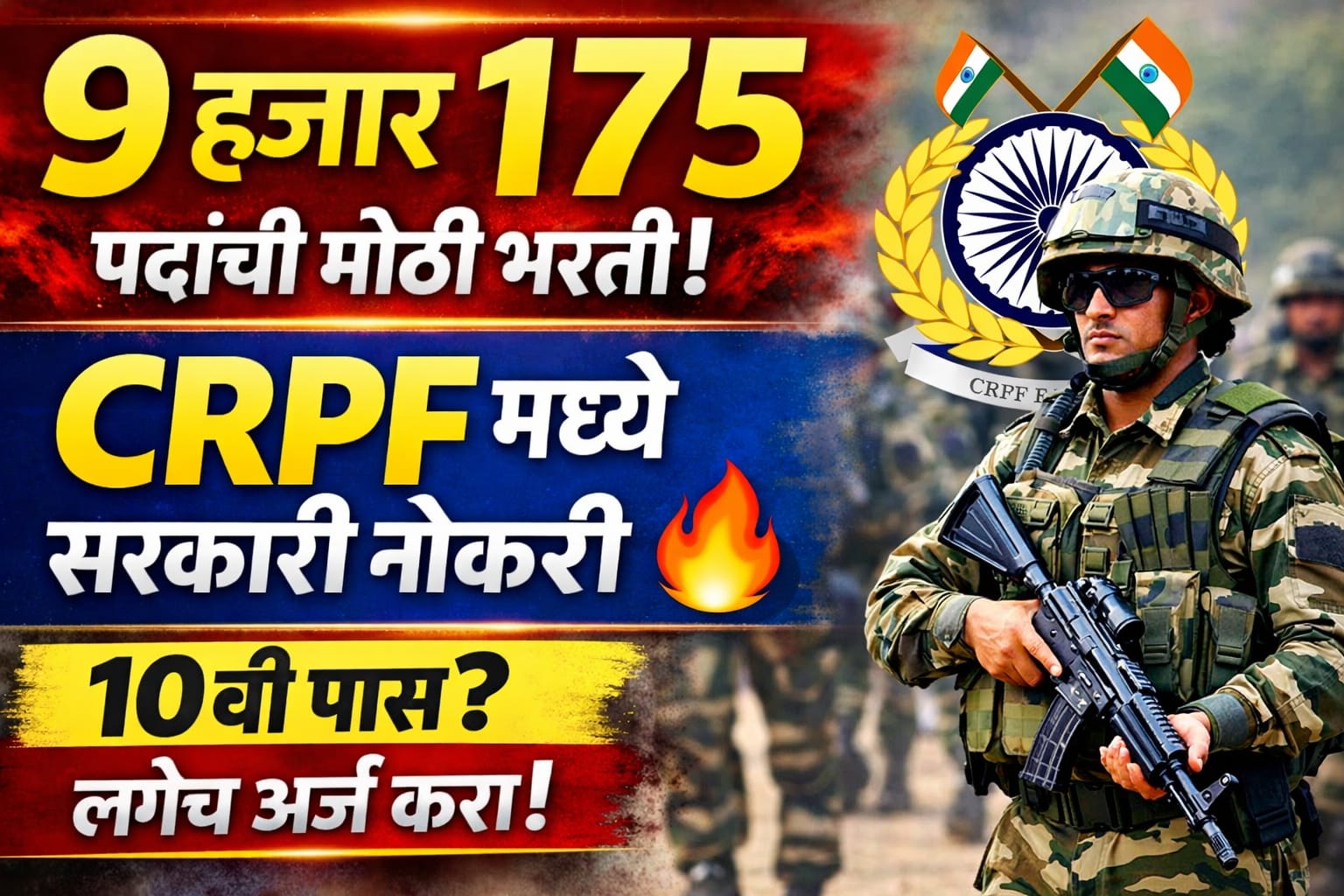 CRPF Recruitment 2026 9175 Posts Apply Online – सीआरपीएफ ट्रेड्समैन भरती 2026 साठी 9175 पदांची मोठी भरती जाहीर, 10वी पास उमेदवारांसाठी संधी, अर्ज प्रक्रिया, पात्रता, वयोमर्यादा व संपूर्ण माहिती येथे वाचा…