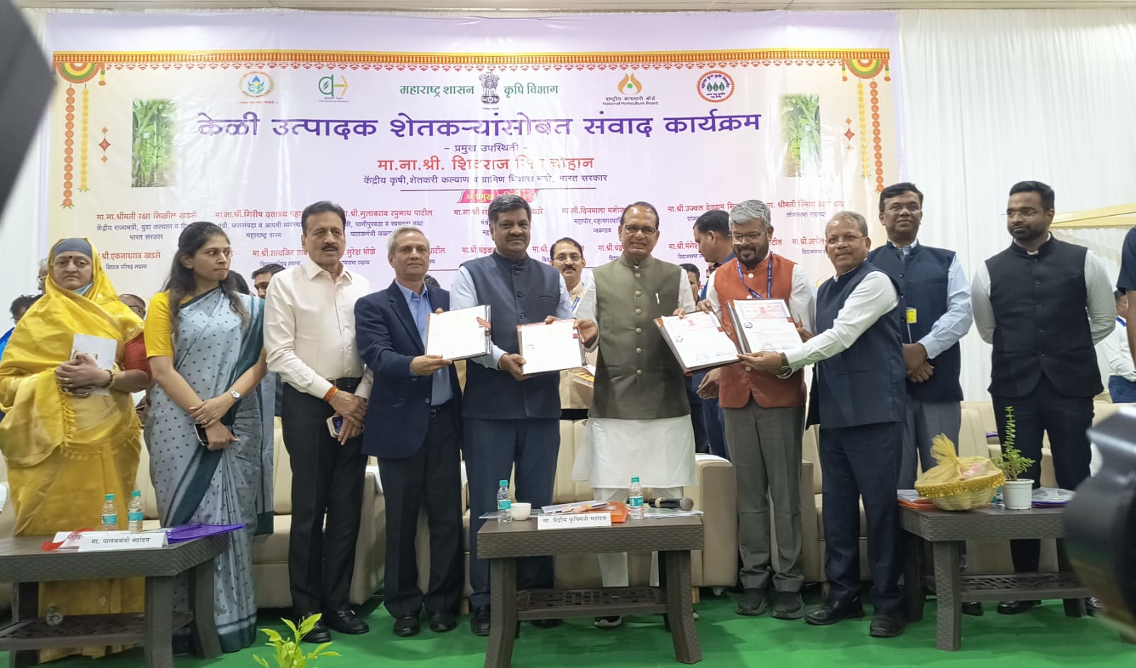 कवयित्री बहिणाबाई चौधरी उत्तर महाराष्ट्र विद्यापीठ येथे झालेल्या केळी चर्चासत्रात केंद्रीय कृषी मंत्री शिवराज सिंह चौहान यांच्या उपस्थितीत कराराच्या प्रतींचे आदान प्रदान करण्यात आले. त्याप्रसंगी केंद्रीय क्रीडा राज्यमंत्री रक्षा खडसे, जलसंपदा मंत्री गिरीष महाजन, खासदार स्मिता वाघ, केंद्रीय कृषी मंत्रालयाचे सहसचिव प्रियरंजन दास, महाराष्ट्र राज्याच्या कृषी आयुक्तालयातील फलोत्पादन संचालक अंकुश माने, आयसीएआर चे  एडीजी डॉ. व्ही. बी. पटेल, जिल्हाधिकारी रोहन घुगे यांच्यासह मान्यवर उपस्थित होते.