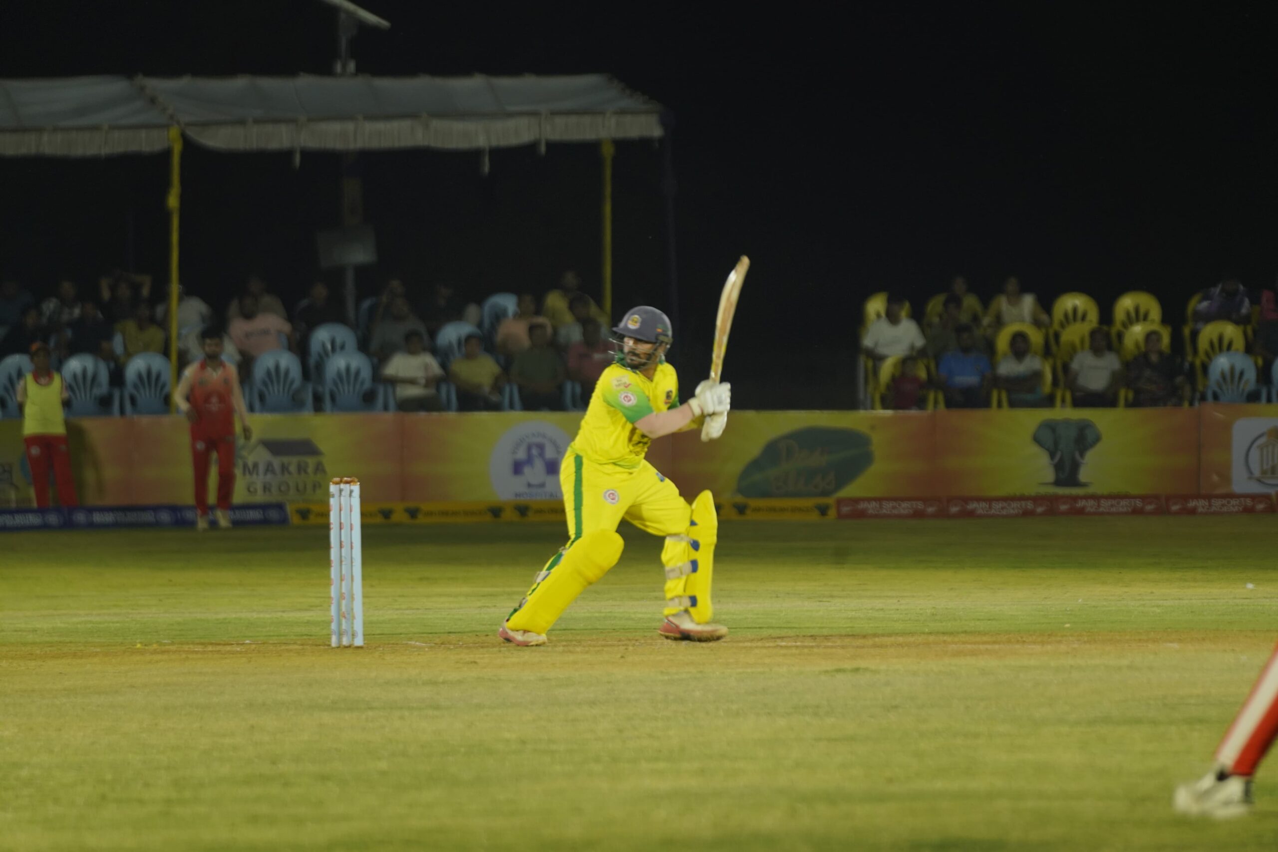 सलामीवीर मानस विजय पाटील १० धावांवर बाद झाल्यानंतर, राम राठोडने आक्रमक पवित्रा घेत २८ चेंडूत ४३ धावा काढल्यात. यात त्याने ४ चौकार, ३ उत्तुंग षटकार खेचले. मात्र, एका बाजूने विकेट्स पडताना प्रद्युम्न महाजनने खिंड लढवली. त्याने ४३ चेंडूत ५ चौकार आणि २ षटकारांच्या मदतीने नाबाद ६१ धावांची महत्त्वपूर्ण खेळी साकारली. क्रिषी नथानीने ३३ धावांचे योगदान देत त्याला उत्तम साथ दिली. जामनेरचा डाव ५ बाद १६० धावांवर स्थिरावला.