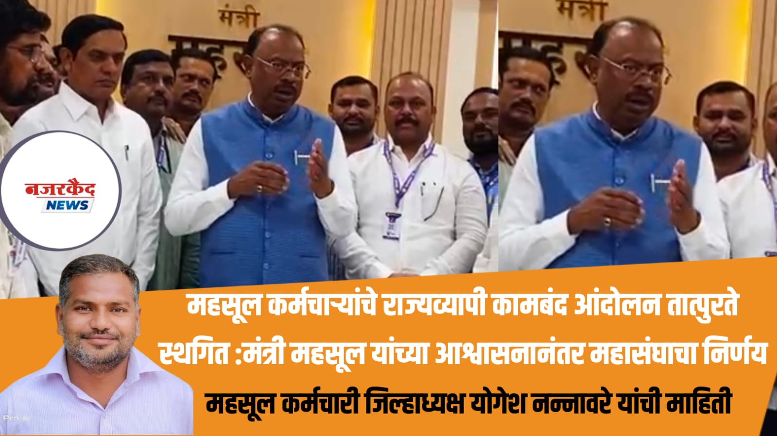 जळगाव | प्रतिनिधी- महाराष्ट्र राज्य महसूल अधिकारी व कर्मचारी समन्वय महासंघाने दिनांक 19 डिसेंबर 2025 पासून पुकारलेले राज्यव्यापी कामबंद आंदोलन तात्पुरते स्थगित करण्याचा निर्णय घेतला आहे. महसूल विभागातील दीर्घकालीन प्रलंबित आर्थिक व सेवा विषयक मागण्यांबाबत मा. मंत्री महसूल यांनी सकारात्मक भूमिका घेत ठोस आश्वासने दिल्यामुळे हा निर्णय घेण्यात आला असल्याची माहिती महसूल कर्मचारी संघटनेचे जिल्हाध्यक्ष योगेश नन्नावरे यांनी दिली.