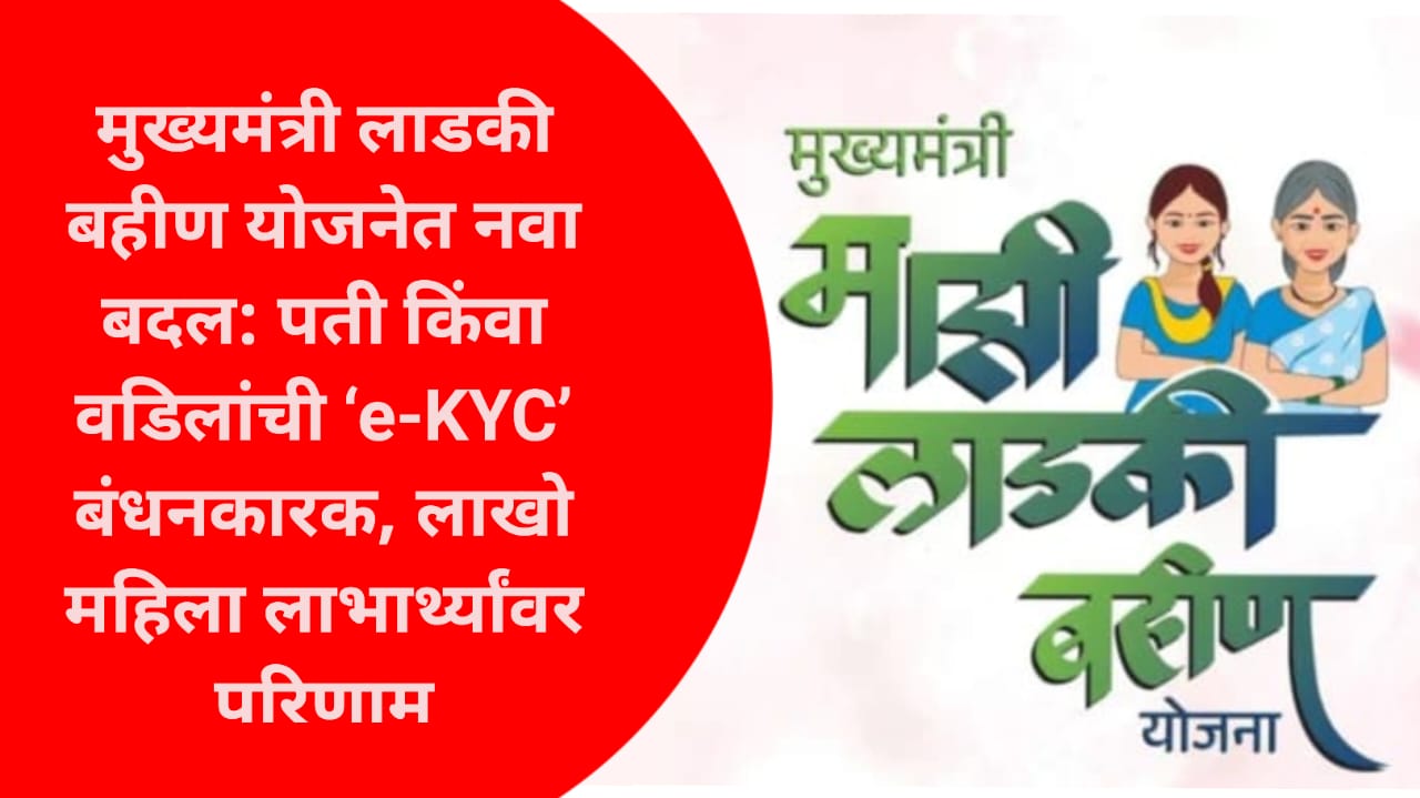 Ladki bahin yojana महाराष्ट्र सरकारच्या मुख्यमंत्री लाडकी बहीण योजनेत मोठा बदल. लाभार्थी महिलांसाठी पती किंवा वडिलांचे e-KYC अनिवार्य. उत्पन्न मर्यादा ₹2.5 लाखांपेक्षा जास्त असल्यास महिला अपात्र. जाणून घ्या संपूर्ण माहिती, अटी व परिणाम.