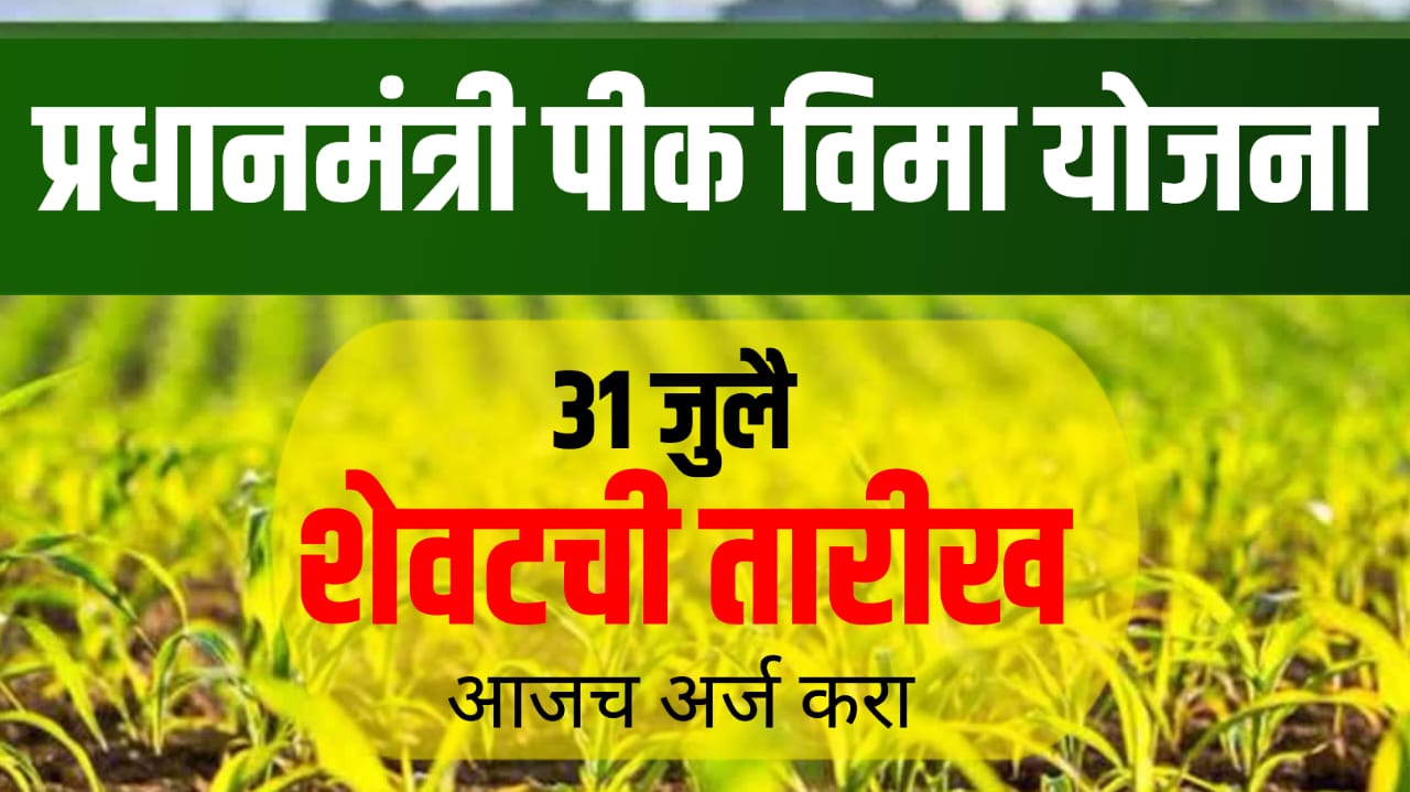 भारत सरकार व महाराष्ट्र शासनाच्या संयुक्त विद्यमाने प्रधानमंत्री पीक विमा योजना खरीप 2025 (PM Crop Insurance Kharif 2025) राबवण्यात येत आहे. नैसर्गिक आपत्तीमुळे पीक नष्ट झाल्यास आर्थिक नुकसान भरपाई मिळवण्यासाठी ही योजना अत्यंत उपयुक्त ठरणार आहे.योजनेचा लाभ घेण्यासाठी अंतिम मुदत : 31 जुलै 2025