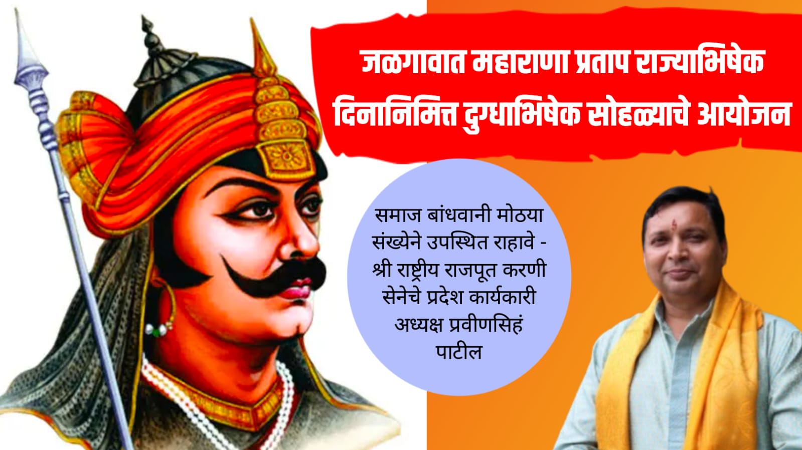 महाराणा प्रताप यांच्या राज्याभिषेक दिनानिमित्त जळगाव येथे दुग्धाभिषेक सोहळ्याचे आयोजन करण्यात आले आहे. हा कार्यक्रम श्री राष्ट्रीय राजपूत करणी सेना यांच्या वतीने आयोजित करण्यात आला असून, जळगाव येथील महाराणा प्रताप स्मारक येथे सकाळी ठीक १०.०० वाजता कार्यक्रमास प्रारंभ होणार असून कार्यक्रमाला राजपूत समाज बांधवानी उपस्थित राहावे असे आवाहन श्री राष्ट्रीय राजपूत करणी सेनेचे प्रदेश कार्यकारी अध्यक्ष प्रवीणसिहं पाटील यांनी केले आहे.