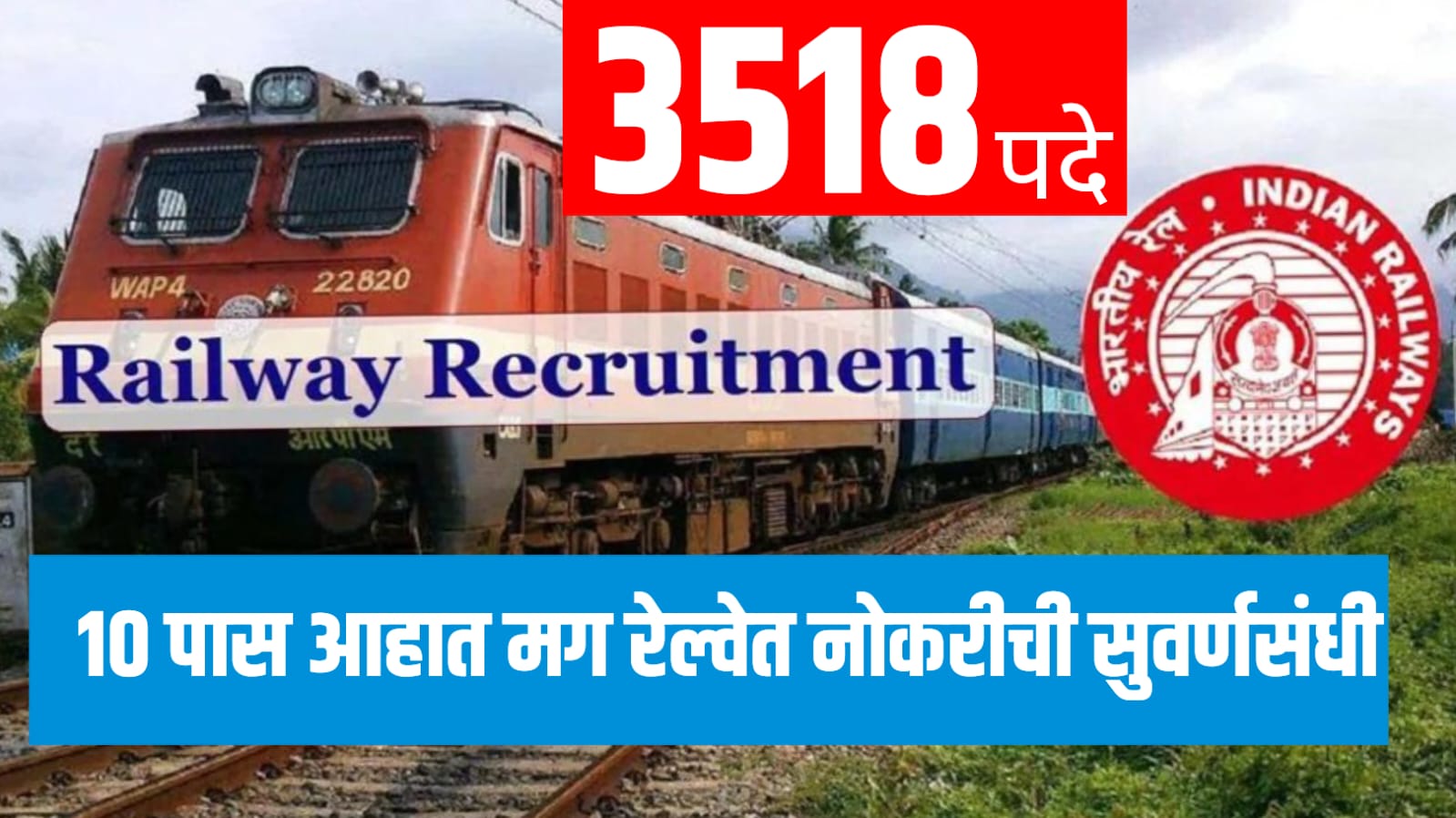 रेल्वेत नोकरी करण्याचे स्वप्न पाहणाऱ्या तरुणांसाठी मोठी बातमी आहे. Railway Recruitment अंतर्गत दक्षिण रेल्वेत अप्रेंटिसशिप पदांसाठी तब्बल ३५१८ पदांची भरती जाहीर झाली आहे. इच्छुक उमेदवारांनी लवकरात लवकर अर्ज करून ही सुवर्णसंधी साधावी.