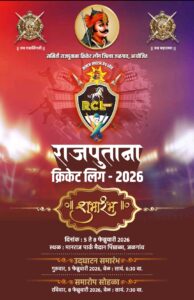 जळगाव : समिती राजपुताना क्रिकेट लीग, जिल्हा जळगाव यांच्या वतीने “समाज संघटन हेच ध्येय” या ब्रीदवाक्याखाली राजपुताना क्रिकेट लीग (RCL) – 2026 चे भव्य आयोजन करण्यात आले आहे. ही स्पर्धा दिनांक 5 ते 8 फेब्रुवारी 2026 या कालावधीत मानराज पार्क मैदान, पिंप्राळा, जळगाव येथे संपन्न होणार आहे.