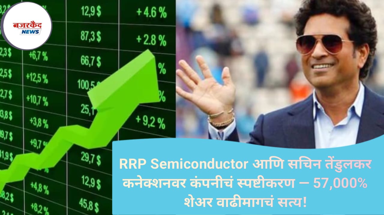 RRP Semiconductor च्या शेअरमध्ये 57,000% वाढ झाल्यानंतर सोशल मीडियावर “सचिन तेंडुलकरने गुंतवणूक केली” अशा अफवा पसरल्या. मात्र, कंपनीने अधिकृत स्पष्टीकरण देत या दाव्यांचे खंडन केलं आहे. जाणून घ्या या प्रकरणाचं संपूर्ण सत्य आणि शेअर बाजारातील घडामोडी.माजी क्रिकेटपटू सचिन तेंडुलकर (Sachin Tendulkar) यांचं नाव सध्या शेअर बाजारात चर्चेत असलेल्या एका कंपनीशी जोडले जात आहे. विशेष म्हणजे, ही कंपनी आहे — RRP Semiconductor Limited, जिच्या शेअरमध्ये केवळ 18 महिन्यांत जवळपास 57,000% वाढ (57000% stock surge) झाल्याची धक्कादायक आकडेवारी समोर आली आहे.
