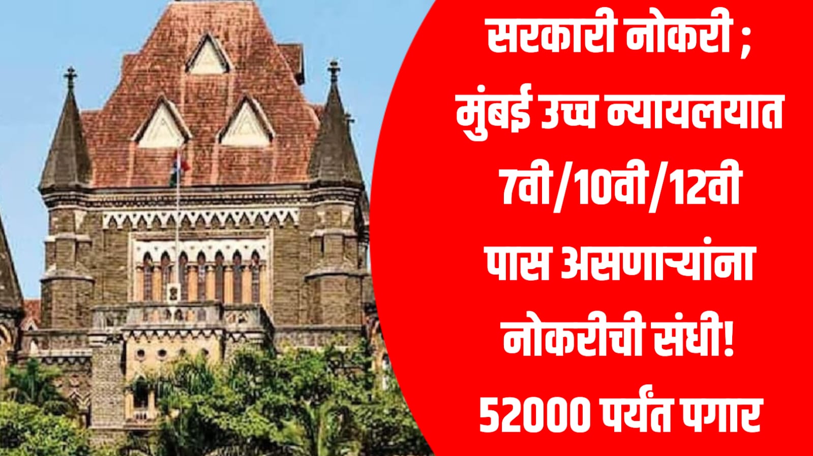 बॉम्बे हाय कोर्टाच्या मूख्य शाखेच्या आस्थापनेवरील पदांसाठी ही भरती करण्यात येणार आहे. या नोकरीसाठी तुम्ही ऑफलाइन पद्धतीने अर्ज करु शकतात.२१ सप्टेंबर अर्ज पाठवण्याची शेवटची तारीख आहे. Bombay High Court Recruitment 2025