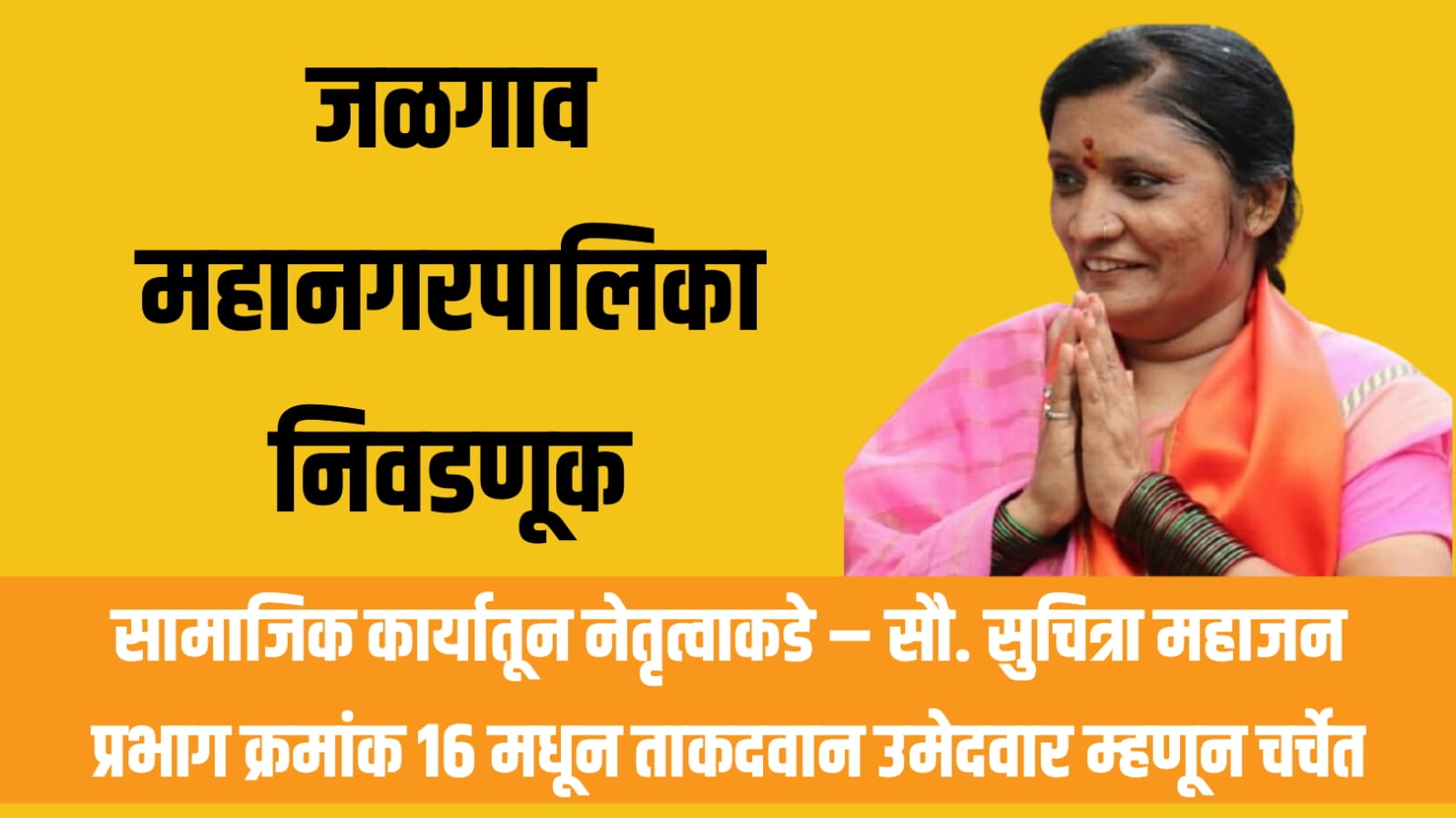जळगाव,(प्रतिनिधी)- आगामी जळगाव महानगरपालिका निवडणुकीच्या पार्श्वभूमीवर सामाजिक कार्यातून पुढे आलेल्या सौ. सुचित्रा महाजन या प्रभाग क्रमांक १६ मधून एक प्रभावी, सक्षम व ताकदवान उमेदवार म्हणून नागरिकांच्या पसंतीस उतरल्याची चर्चा सध्या राजकीय व सामाजिक वर्तुळात जोर धरू लागली आहे.